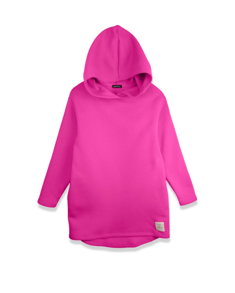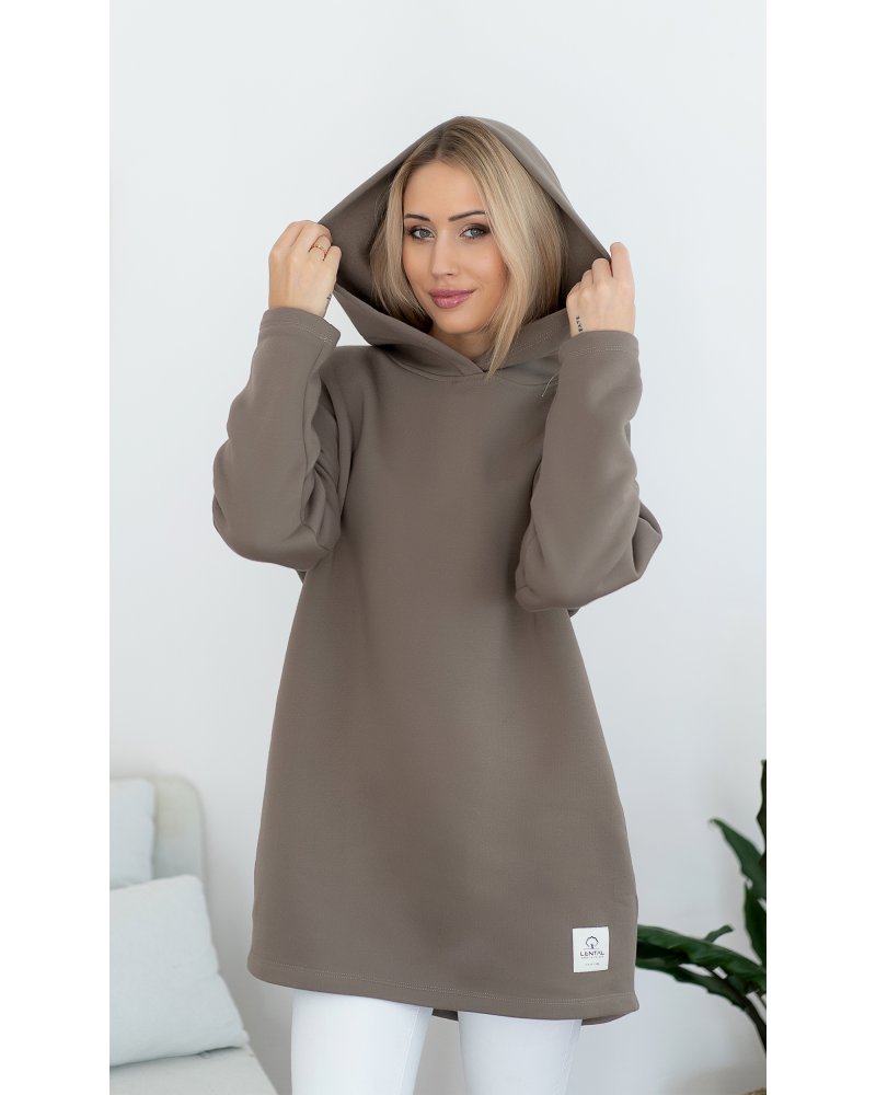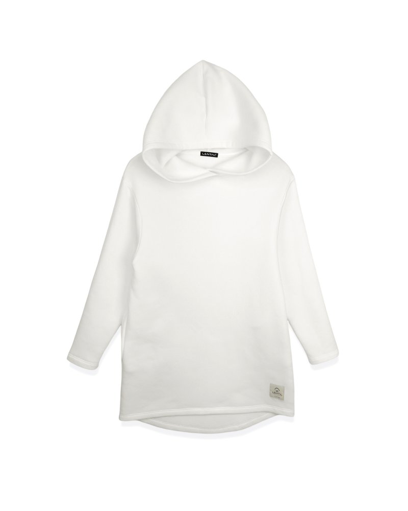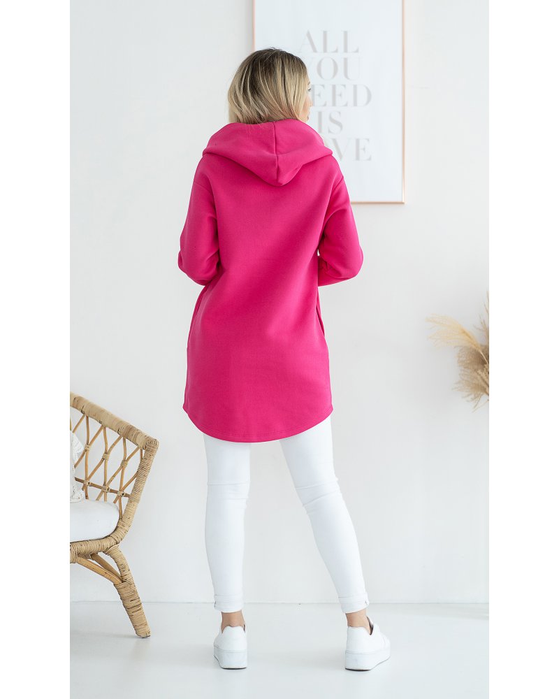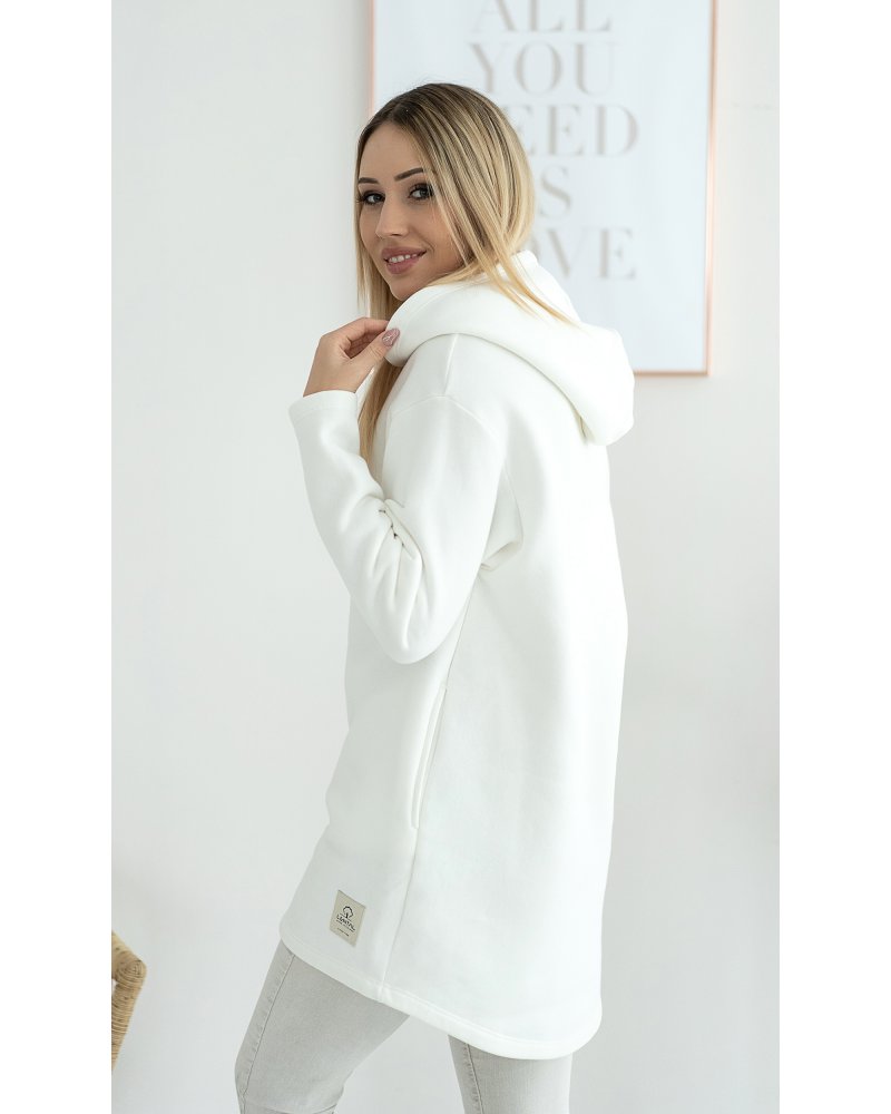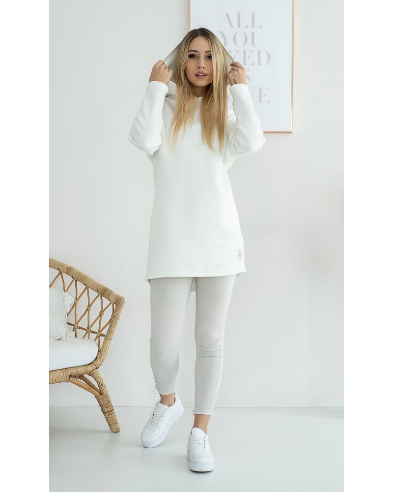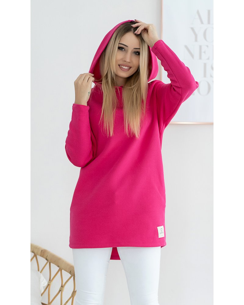 Volná mikina klasického střihu. V bočních švech jsou kapsy.