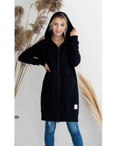 Dlouhá mikina na zip vyrobená z husté a hřejivé bavlny. Rukávy a spodní část mikiny zakončené lemy. Vpředu má průstřihy se zapuštěnými kapsami. Pro pohodlí při používání lze zip rozepnout i zespodu.