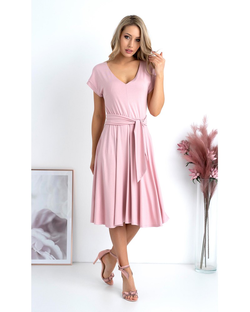 Šaty s vypasovaným vrškem a rozšířeným spodním dílem z půlkruhu. Dívčí a elegantní. Díky viskózovému úpletu jsou univerzální. Můžete si je obléknout pro speciální příležitost a v létě k Vašim oblíbeným teniskám. Guma v pase opticky zeštíhluje pas. K šatům je pásek.