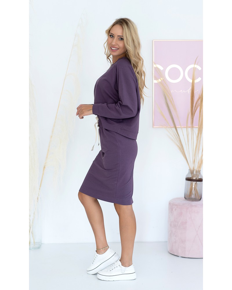 "Ženy milují tepláky a pohodlí, které nabízejí. Tepláková souprava už dávno není jen praktickým oblečením do posilovny, fitness nebo na běhání. Stala se univerzálním každodenním outfitem. Nejen na doma, ale i na nákupy, dovolené, procházky městem i venkovem. Naše tepláková souprava sleduje moderní trendy. Poskytuje pohodlí a podtrhuje ženskost. Sukně má pouzdrový střih s vysokým pasem a zajímavým založením na zasní straně místo klasického rozparku. Střih zdůrazňuje ženskou siluetu.