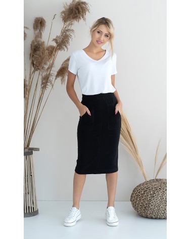 Halszka je vypasovaná midi sukně vyrobená z tenké teplákoviny. Sukně má vysoký pas. V pase je široká, prošitá guma. Kapsy vpředu i vzadu. Vzadu je rozparek.