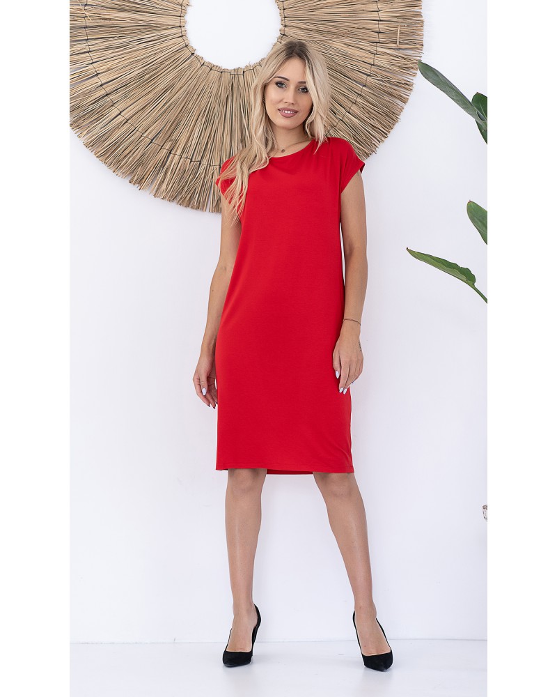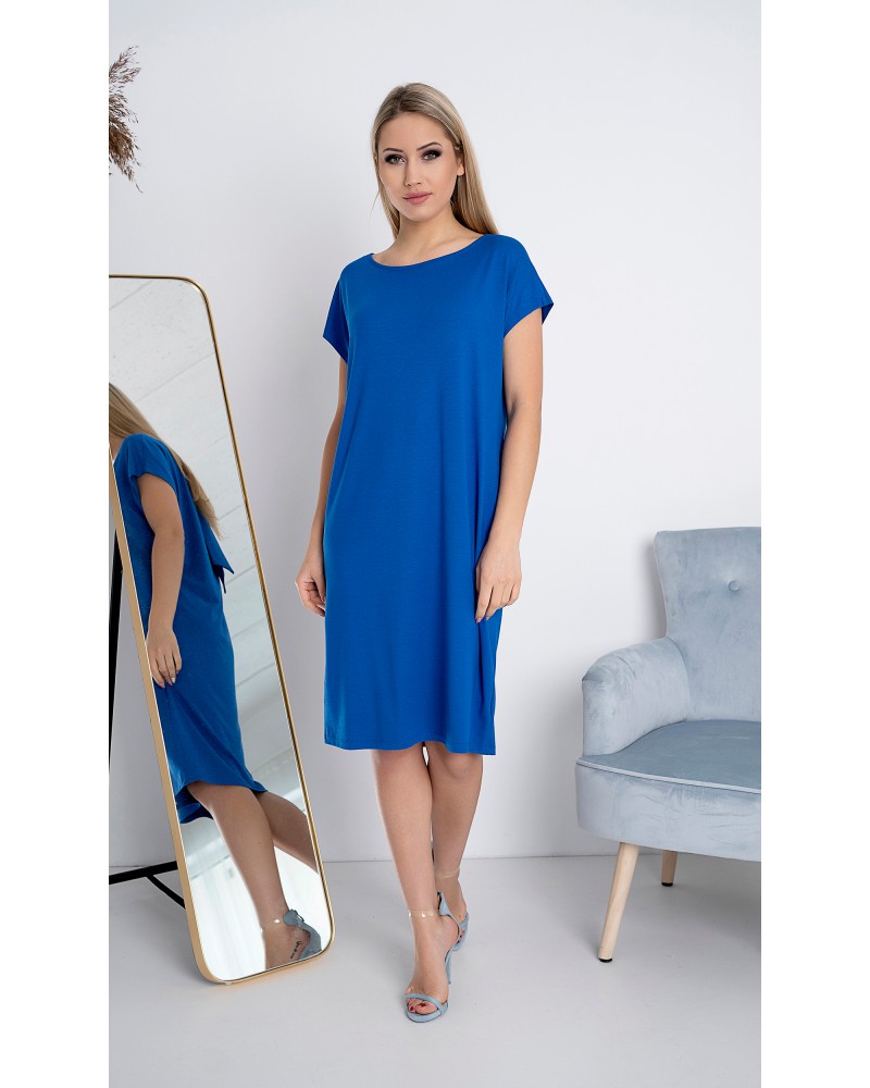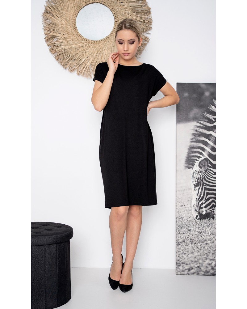 The fashionable Sami dress combines the elegance of simple lines and forms with a slight nonchalance of patterns, which emphasizes the individual character of the model. Here such an accent was found on the back, the back of the dress has a deep neckline and two fabric ties. They can be arranged into a binding, which gives great charm to the whole. It undulates slightly, because the dress is made of viscose, which fits very well. This strong accent on the back is juxtaposed with an ascetic front, creating a very original model of the dress. The dress will draw the attention of any woman.