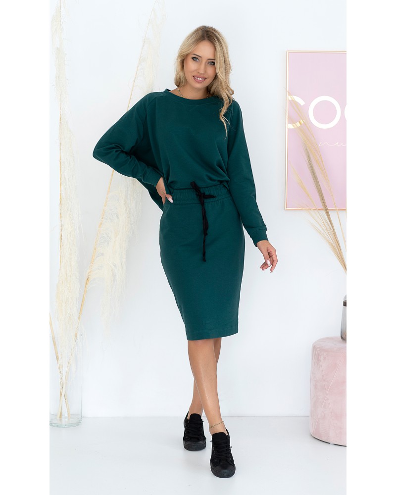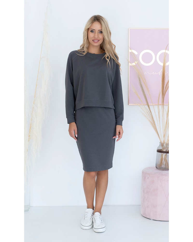 The skirt has a pencil cut with a high waist and an interesting rear assumption instead of the classic zipper. The cut emphasizes the feminine silhouette.