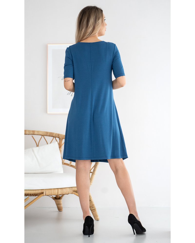 Suknelė „Wiola“ yra lengvas, plazdantis drabužis, pagamintas iš kvėpuojančio viskozės trikotažo. Ji turi šonines klostes, kurios optiškai lieknina figūrą, o trumpa, siaura rankovė subtiliai dengia pečius. V formos iškirptė prailgina kaklą, o modelis tinka ir būsimoms mamoms. Suknelė yra prieinama keliomis spalvomis, įskaitant klasikinę juodą.
