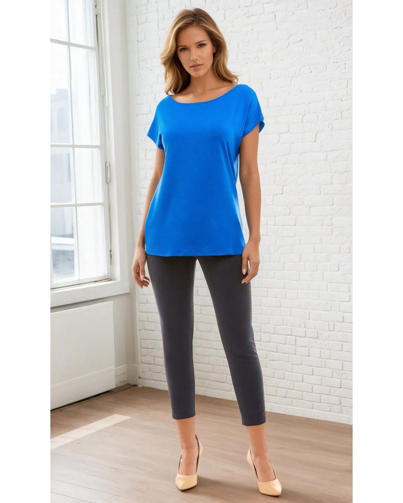 94% wiskoza, 6% elastan. Gramatura 200 g. Materiał dzianinowy, uciągliwy do 10 cm, lekki oraz oddychający. Dzianina wiskozowa, której użyto do wykonania produktu posiada certyfikat Oeko-Tex Standard 100, który jest uznawanym na całym świecie znakiem jakości tkanin, dzianin wykonanych wyłącznie z bezpiecznych materiałów i barwników. Wiskoza jest włóknem pozyskanym z celulozy. Materiał jest miękki, elastyczny, komfortowy w użytkowaniu. Dzianina nie pilinguje się i jest łatwa w pielęgnacji. Możesz prasować ubrania na wieszaku. Wszelkie zagniecenia znikają natychmiast po użyciu samej pary z żelazka lub parownicy! Ubrania posłużą Tobie na długo!