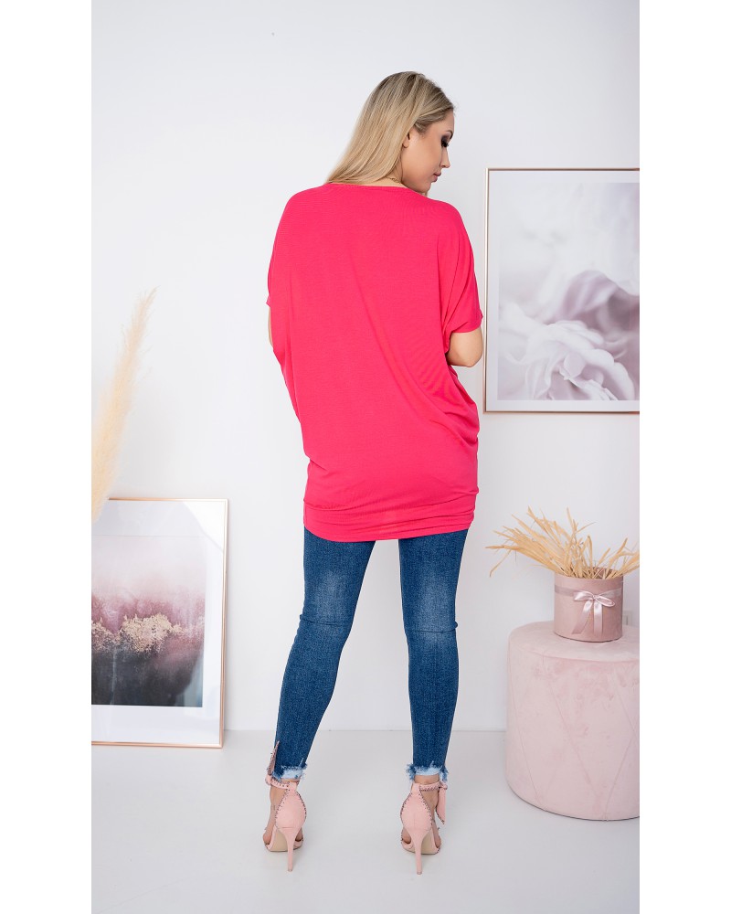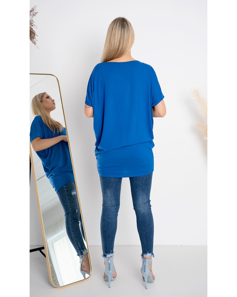 Tunika jest świetnie skrojona. Noszę ją jako bluzkę, puszczając luźno w okolicy talii, nie naciągam na biodra - układa się bardzo fajnie. Materiał bardzo przyjemny i dobrej jakości. Kolor rewelacyjny. Kupiłam drugą również teściowej i jest bardzo zadowolona.