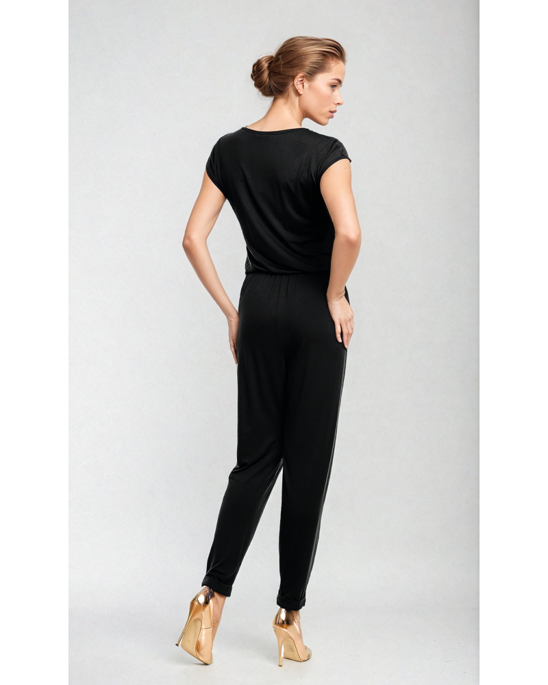 94% wiskoza, 6% elastan. Gramatura 200 g. Materiał dzianinowy, uciągliwy do 10 cm, lekki oraz oddychający. Dzianina wiskozowa, której użyto do wykonania produktu posiada certyfikat Oeko-Tex Standard 100, który jest uznawanym na całym świecie znakiem jakości tkanin, dzianin wykonanych wyłącznie z bezpiecznych materiałów i barwników. Wiskoza jest włóknem pozyskanym z celulozy. Materiał jest miękki, elastyczny, komfortowy w użytkowaniu. Dzianina nie pilinguje się i jest łatwa w pielęgnacji. Możesz prasować ubrania na wieszaku. Wszelkie zagniecenia znikają natychmiast po użyciu samej pary z żelazka lub parownicy! Ubrania posłużą Tobie na długo!